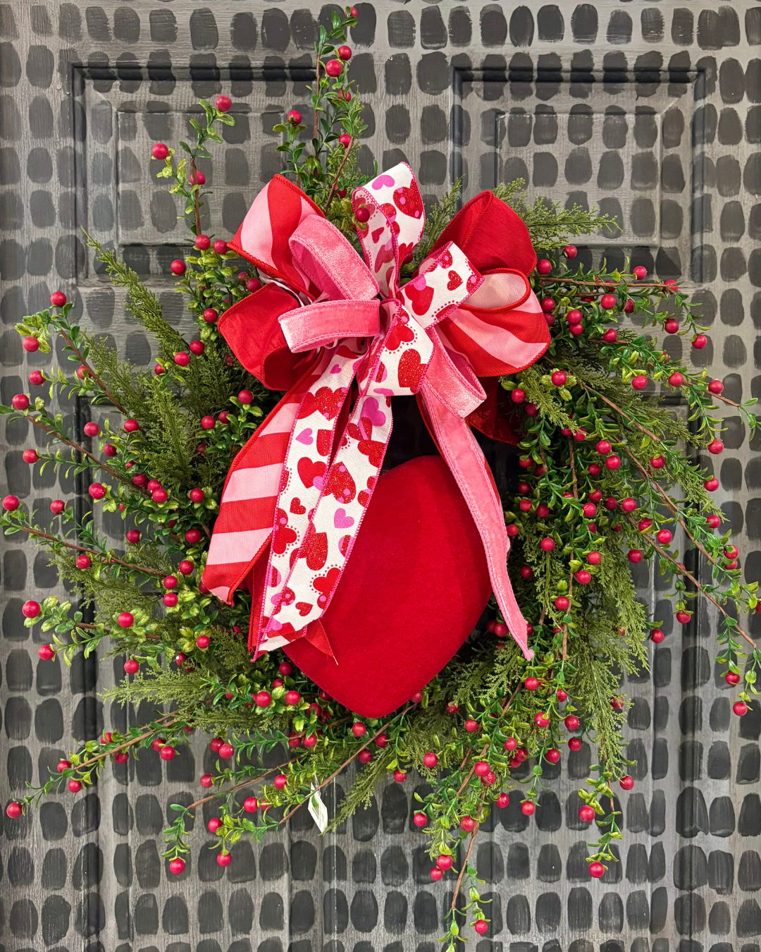 Make a romantic statement with this Berry Red Valentine Wreath. Showcasing a bold single heart, vibrant red berries, and a graceful bow, it transforms any entryway into a love-filled display. Perfect for spreading Valentine's Day spirit throughout your home.