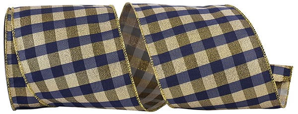 Add a touch of refined sparkle to your décor with our Metallic Check Wired Edge Ribbon in Navy/Gold. Featuring a sophisticated check pattern accented with metallic bars and a wired edge for effortless shaping, this ribbon is perfect for creating elegant bows, trimming wreaths, enhancing tablescapes, or elevating gift wrapping. Ideal for holidays, celebrations, or year-round decorating, this ribbon provides a versatile and stylish accent that works beautifully in any setting.