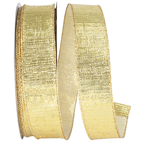Add a touch of shimmer to your gift wrapping, floral arrangements, and craft projects with this stunning metallic gold ribbon. Featuring a reflective finish that catches the light beautifully, this 1.5-inch wide ribbon comes on a generous 50-yard roll—perfect for multiple projects. The wired edges hold their shape, letting you create elegant bows, loops, and decorative accents that stay put. Whether you're dressing up presents, designing centerpieces, or adding glamorous details to DIY creations, this versatile ribbon brings instant sophistication and sparkle to everything it touches.