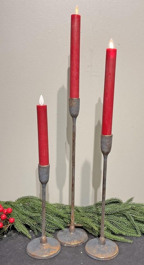 Elevate your décor with the understated elegance of our Distressed Gold Taper Candle Holders. Featuring a sleek, elongated silhouette and a rich metallic finish, these pieces bring warmth and sophistication to any space. Whether displayed on a dining table, mantel, or entryway console, they offer a timeless accent that complements both everyday and seasonal styling with effortless grace.