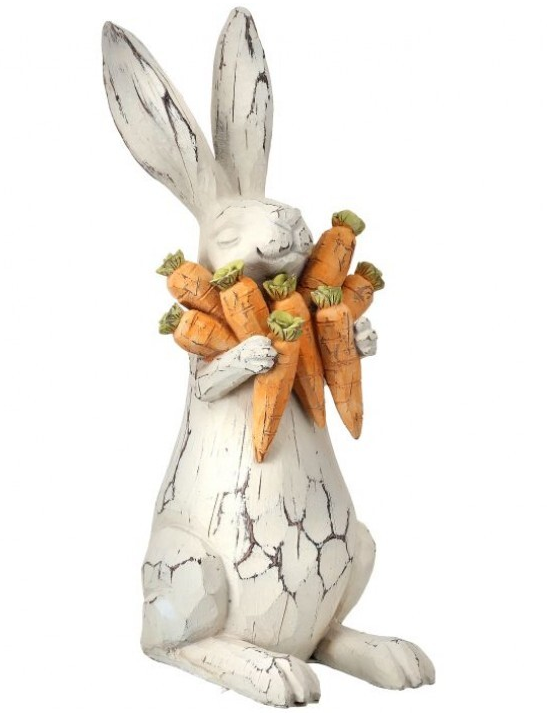Add charming seasonal character to your décor with this 11" Resin Carved Bunny with Carrots. Beautifully detailed with a hand-carved look, this delightful bunny holds a bundle of carrots, bringing a warm, playful touch to spring and Easter displays. Crafted from durable resin, it’s perfect for tabletops, shelves, mantels, or entryway décor. Whether styled on its own or paired with greenery and florals, this sweet accent adds personality and timeless charm to your seasonal décor.