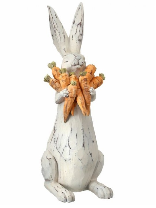Add charming seasonal character to your décor with this 17.5" Resin Carved Bunny with Carrots. Beautifully detailed with a hand-carved look, this delightful bunny holds a bundle of carrots, bringing a warm, playful touch to spring and Easter displays. Crafted from durable resin, it’s perfect for tabletops, shelves, mantels, or entryway décor. Whether styled on its own or paired with greenery and florals, this sweet accent adds personality and timeless charm to your seasonal décor.