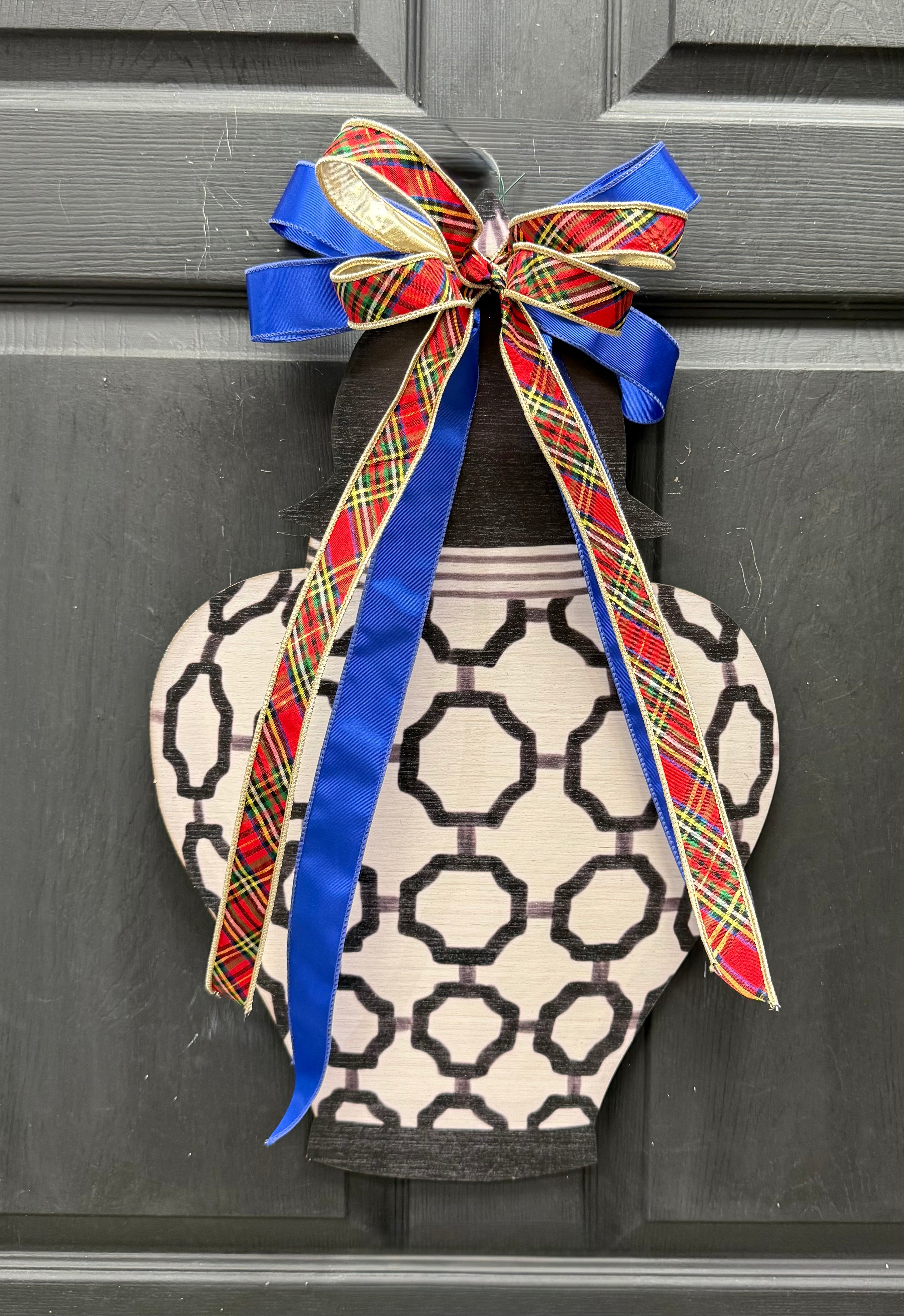Welcome a touch of timeless elegance to your entryway with this striking 24" Black Wood Ginger Jar Door Hanger. Crafted right here in Greenville, SC, this locally-designed piece features vibrant UV ink printing that brings classic ginger jar aesthetics to life. Perfect for adding personality to your front door or interior spaces, it's a conversation starter that celebrates both traditional design and local craftsmanship. Make a statement with style that's printed with pride in the Palmetto State!