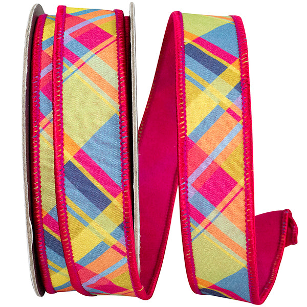 Add a pop of color and classic charm to your décor with this Plaid Florzie Dupioni Deluxe Wired Edge Ribbon. Featuring a vibrant cyclamen plaid pattern, this 1-inch-wide ribbon is crafted with a luxurious dupioni backing for added texture and body. The wired edges provide structure for creating crisp bows, precise loops, and polished accents that hold their shape beautifully. Perfect for wreaths, garlands, gift wrapping, and seasonal or everyday decorating, this ribbon comes in a 10-yard roll—ideal for adding a refined, designer-quality touch to any project.