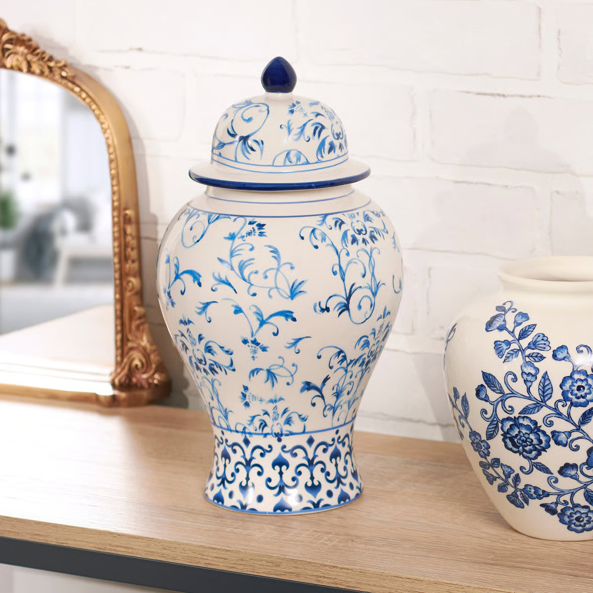 6.75" x 12.25" Bring timeless elegance to your space with this Large Indigo Temple Jar. Featuring rich, deep indigo tones, this striking piece serves as a stunning focal point for shelves, mantels, or entryways.