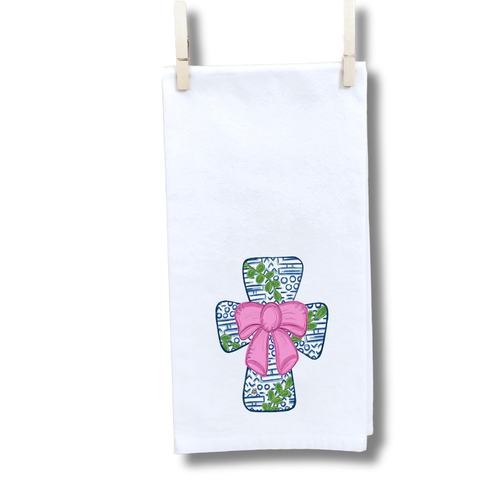 The Chinoiserie Cross with Pink Bow Towel is the perfect kitchen companion! Show off your style with a beautifully designed tea towel featuring a fun and whimsical print.
