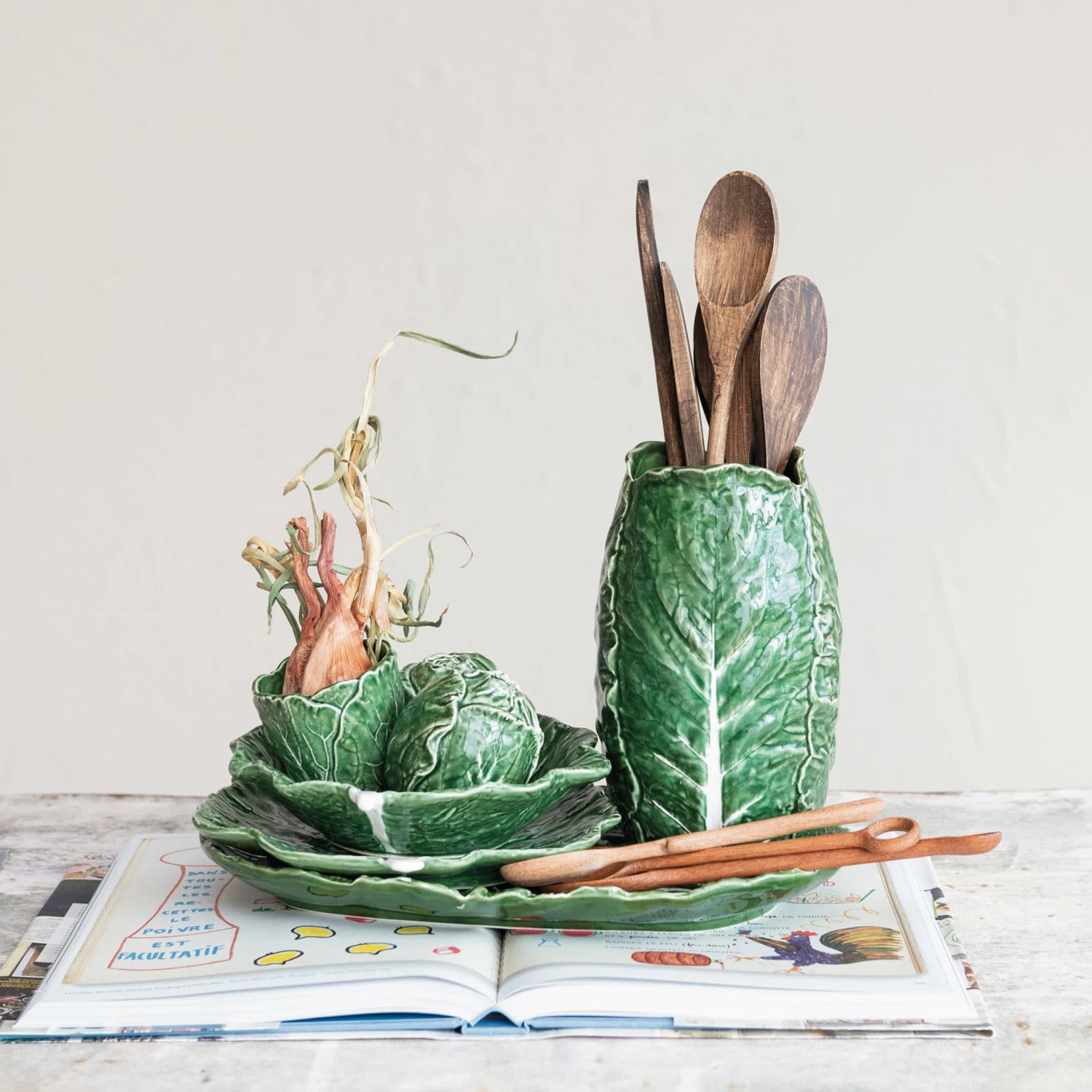 Bring charm to your table with this stoneware cabbage plate. Perfect for displaying appetizers, desserts, or as a standalone decorative accent in any room. 9" x 8.5"