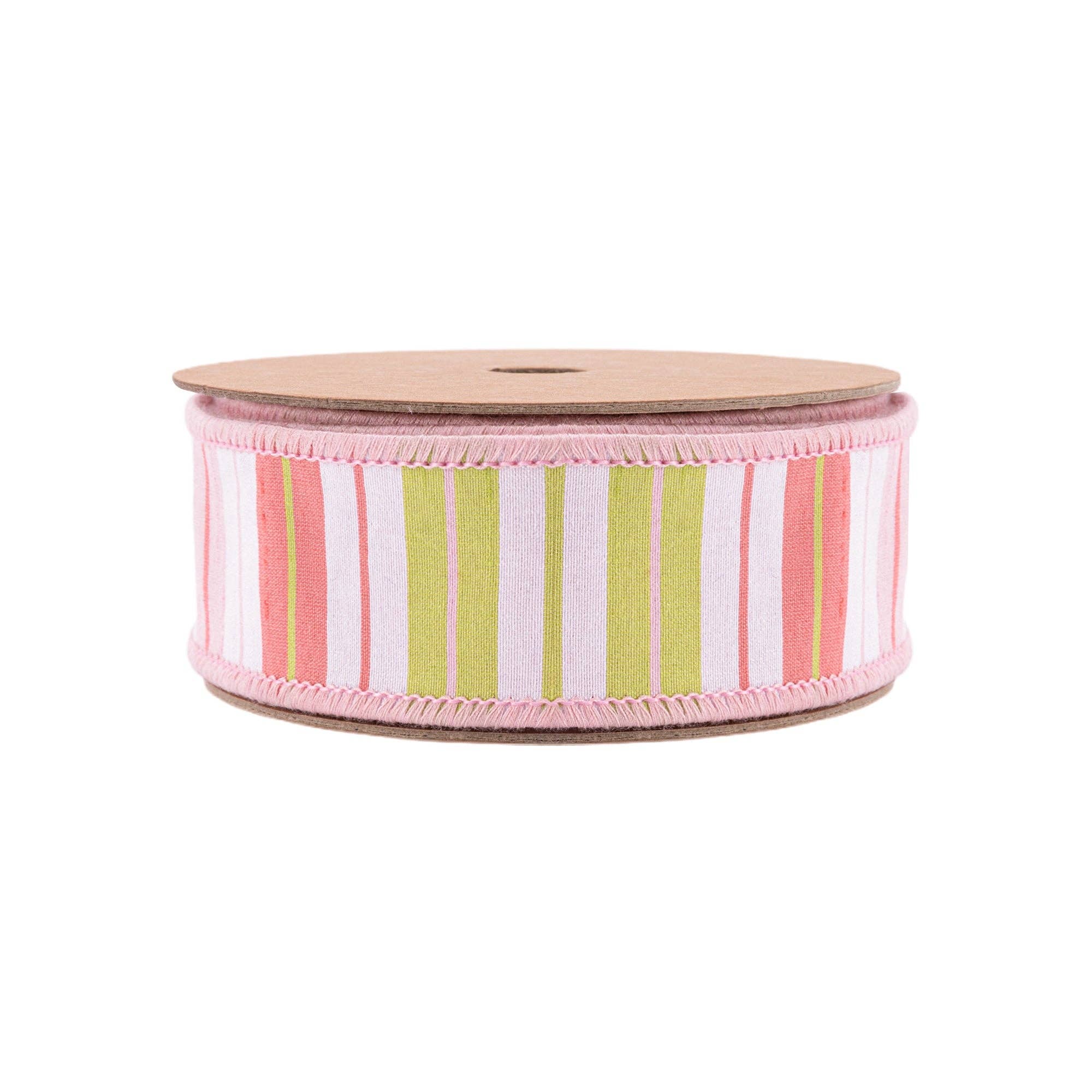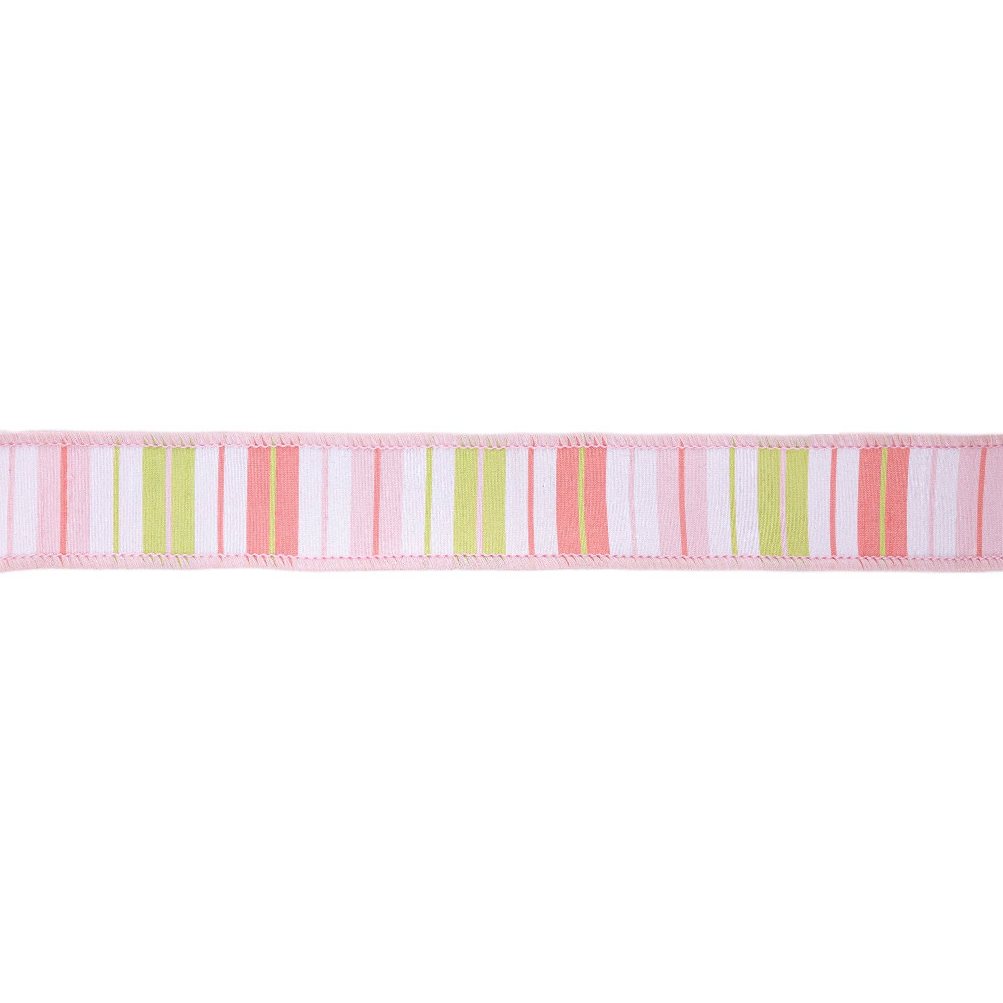 Soft pastel stripes in pink, green, and white create a cheerful look on this 1.5" ribbon. The wired edges make it easy to shape into bows, wreaths, and decorative accents. With 10 yards per roll, you'll have plenty for crafting, gift wrapping, and seasonal projects.
