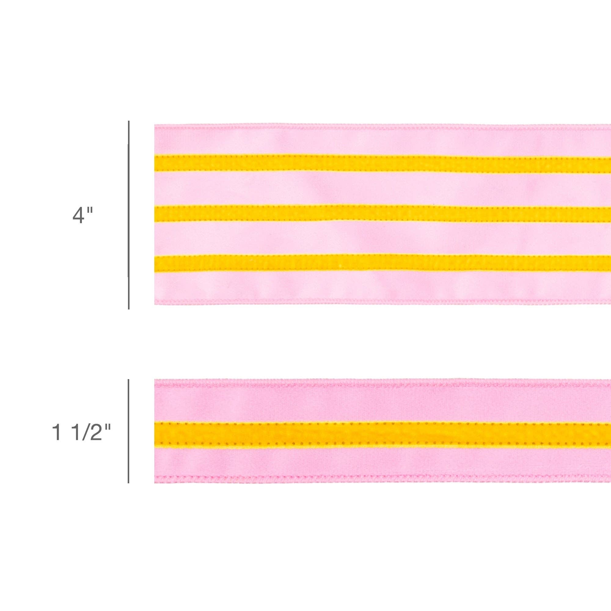 Soft pink velvet ribbon with bright yellow trim in a versatile 1.5" width. Features a wired edge for easy shaping and styling on bows, gift wraps, and floral arrangements. This 10-yard roll brings cheerful color and texture to crafts, décor projects, and special packaging.