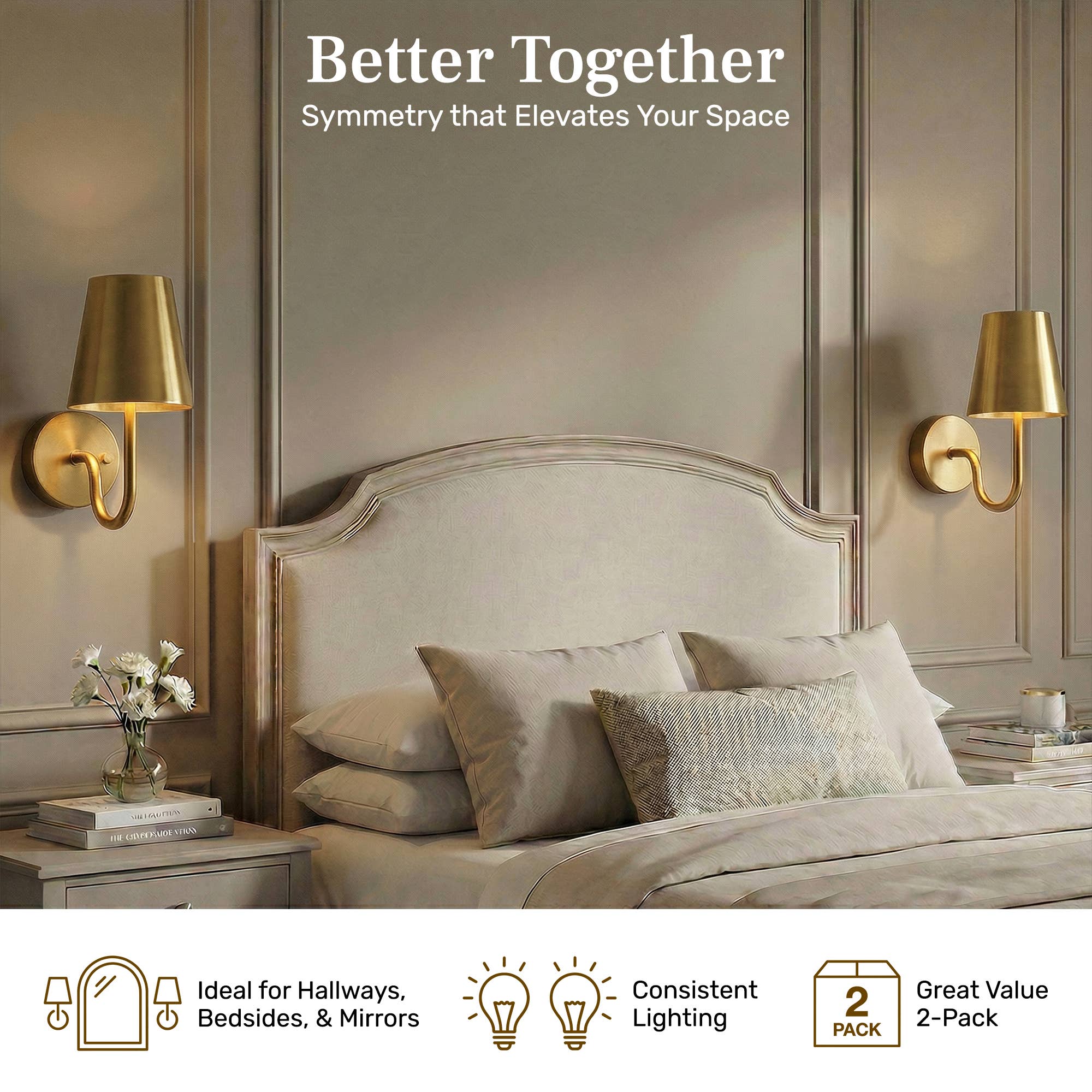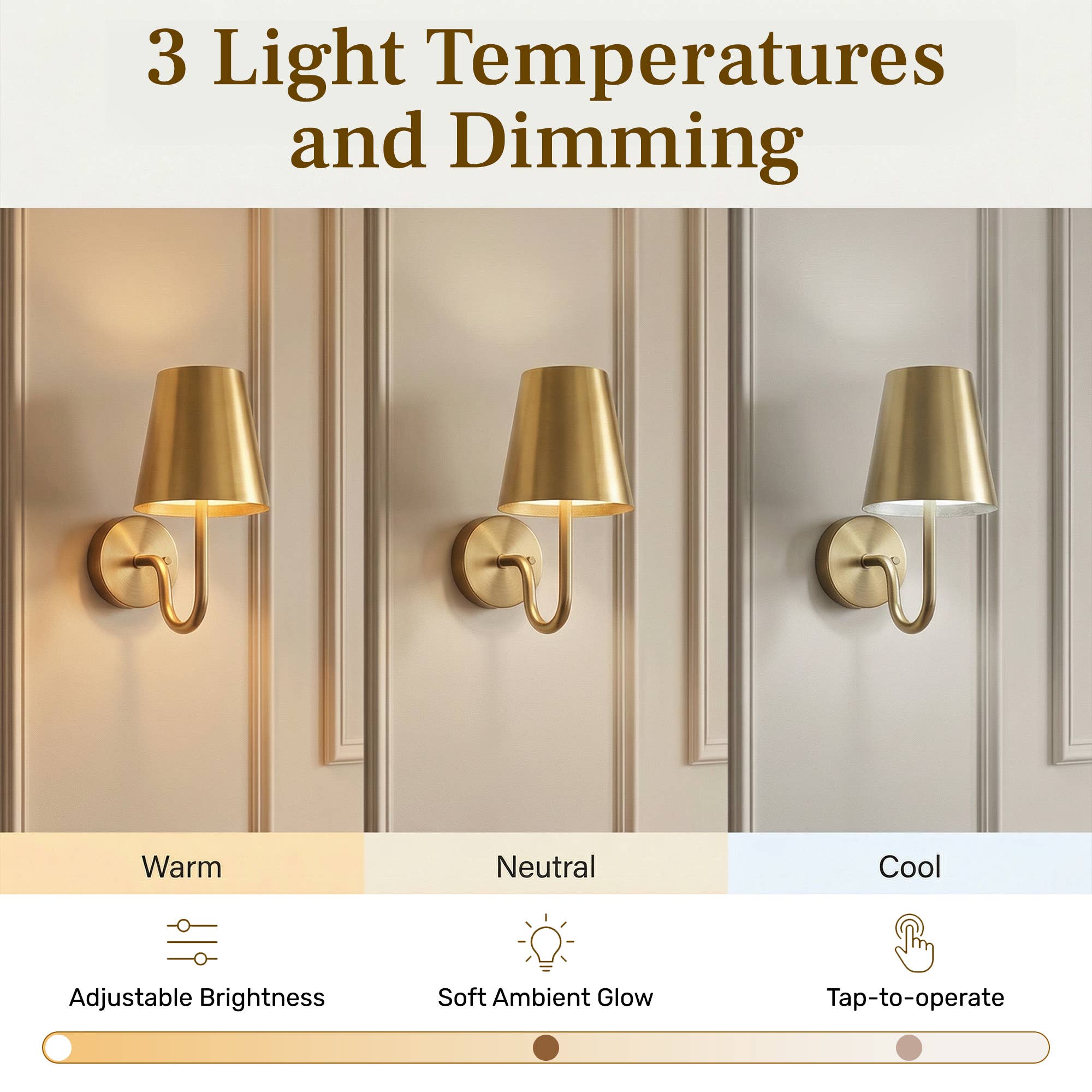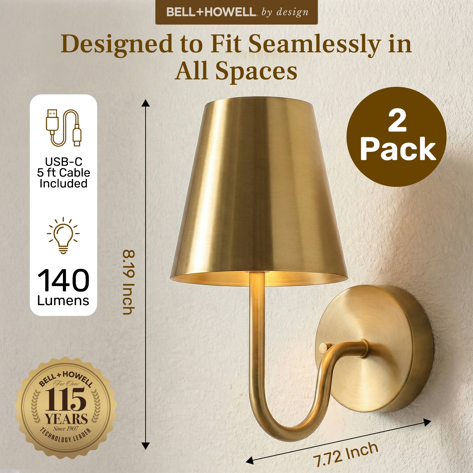 Elegant rechargeable wall sconces with three lighting modes—warm, daylight, and white—let you customize ambiance to match any room. Adjust brightness for cozy or vibrant settings, and enjoy hassle-free installation without hardwiring. Includes USB-C charging cables and mounting hardware for flexible placement. Set of 2 by Bell & Howell.