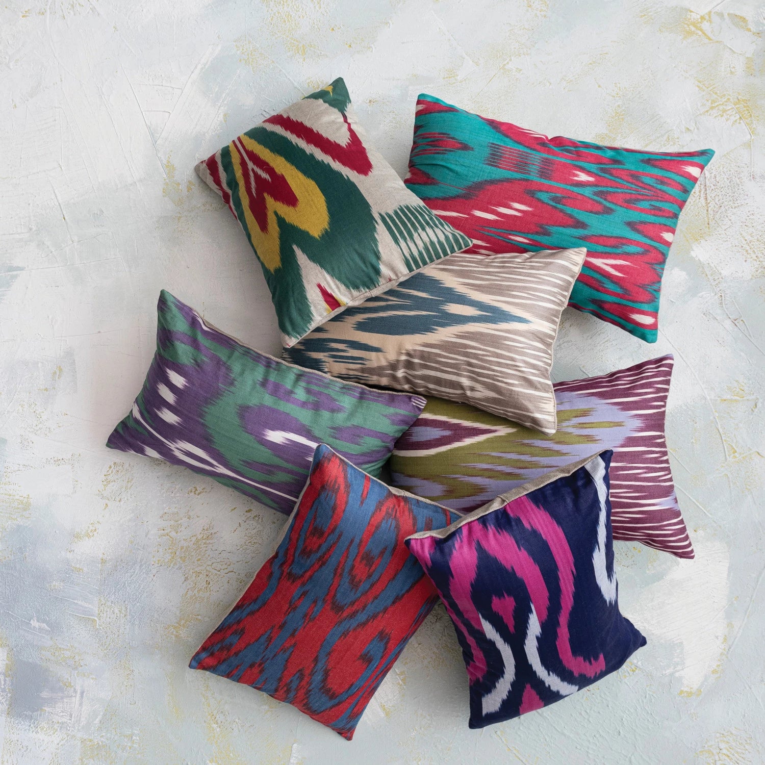 Found Cotton Blend Lumbar Pillow with Ikat & Chambray Back
