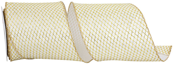 Elevate your floral arrangements and gift wrapping with this luxurious mesh velvet ribbon. Featuring a shimmering ivory and gold metallic finish, the wired edges allow you to shape and sculpt the ribbon exactly as you envision. At 4 inches wide and 10 yards long, you'll have plenty of material for multiple projects. Perfect for weddings, holiday décor, and special occasions.