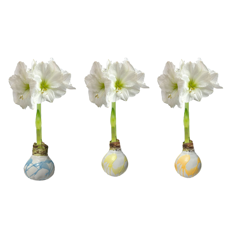 Waxed amaryllis bulbs bloom indoors without soil or water - the wax coating seals in everything needed to flower. Expect 3-5 weeks of blooms with zero maintenance. Perfect for Easter or Spring!