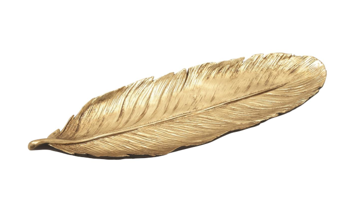 Featuring a smooth feather design with intricate ridges and a centered vein, the polystone dining table centerpiece stands out as a unique piece