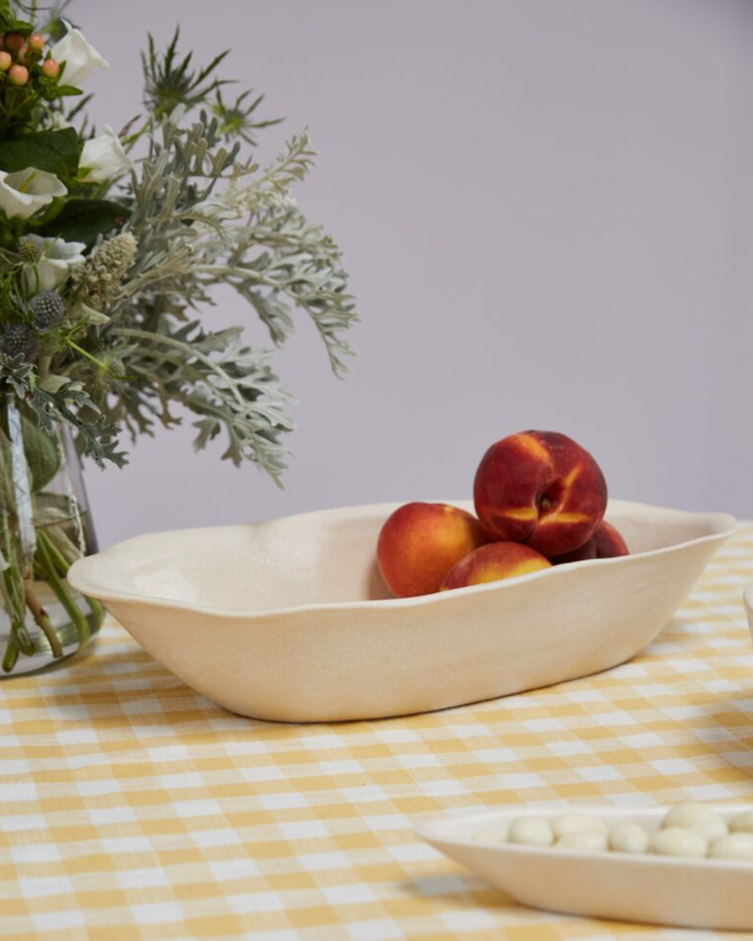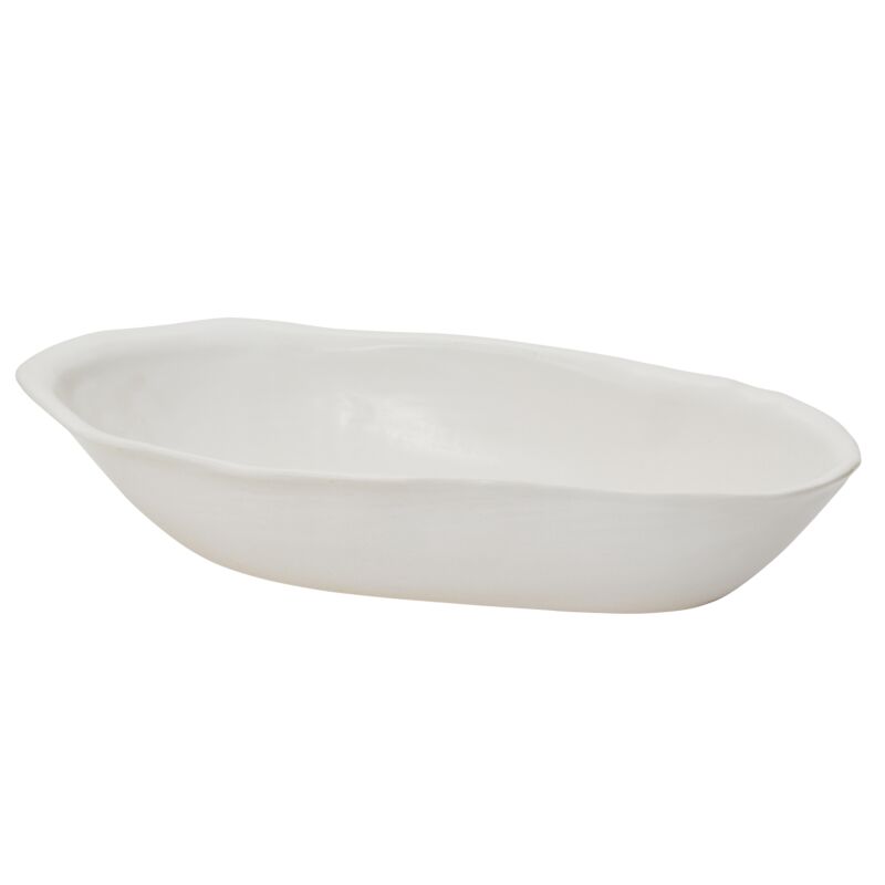 An impeccable choice for for table top, planting, or holding the Shephard flower frogs, the simple yet stunning Dahlia Trough boasts sweeping lines and a matte white glazed finish.