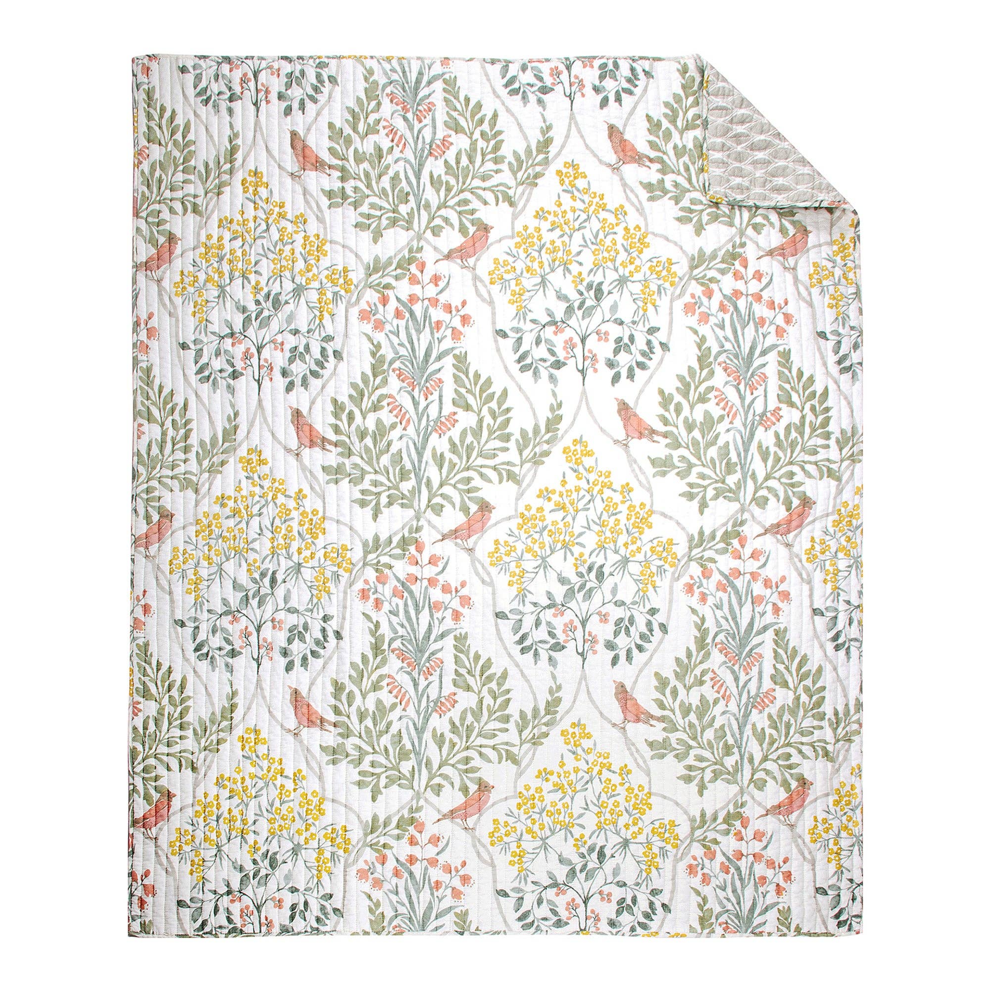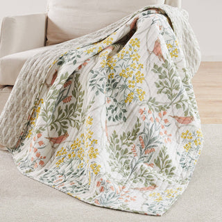 The Monami Reversible Throw by Levtex Home is inspired by ornamental trellis gardens. Offered in blush, yellow, green and grey, this design will immediately transform any room in your home. This throw features blooming flower bouquets on the front, reversing to a grey and white oblong design on the back. The Throw (50x60in.) has a cotton front and back, filled with a cotton-rich filler, and is machine washable. Enjoy this for years to come!