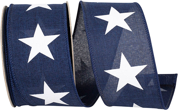 Add a bold, classic accent to your décor with this Large Star Line Linen Wired Edge Ribbon. Crafted from linen with a rich navy background, the ribbon features a striking large star line pattern that brings a timeless, patriotic-inspired touch to any design. Measuring 2.5 inches wide and 10 yards long, it includes wired edges for easy shaping and full, structured bows. Ideal for wreaths, garlands, floral arrangements, and gift wrapping, this versatile ribbon adds texture, depth, and a polished finish to both seasonal and everyday décor.