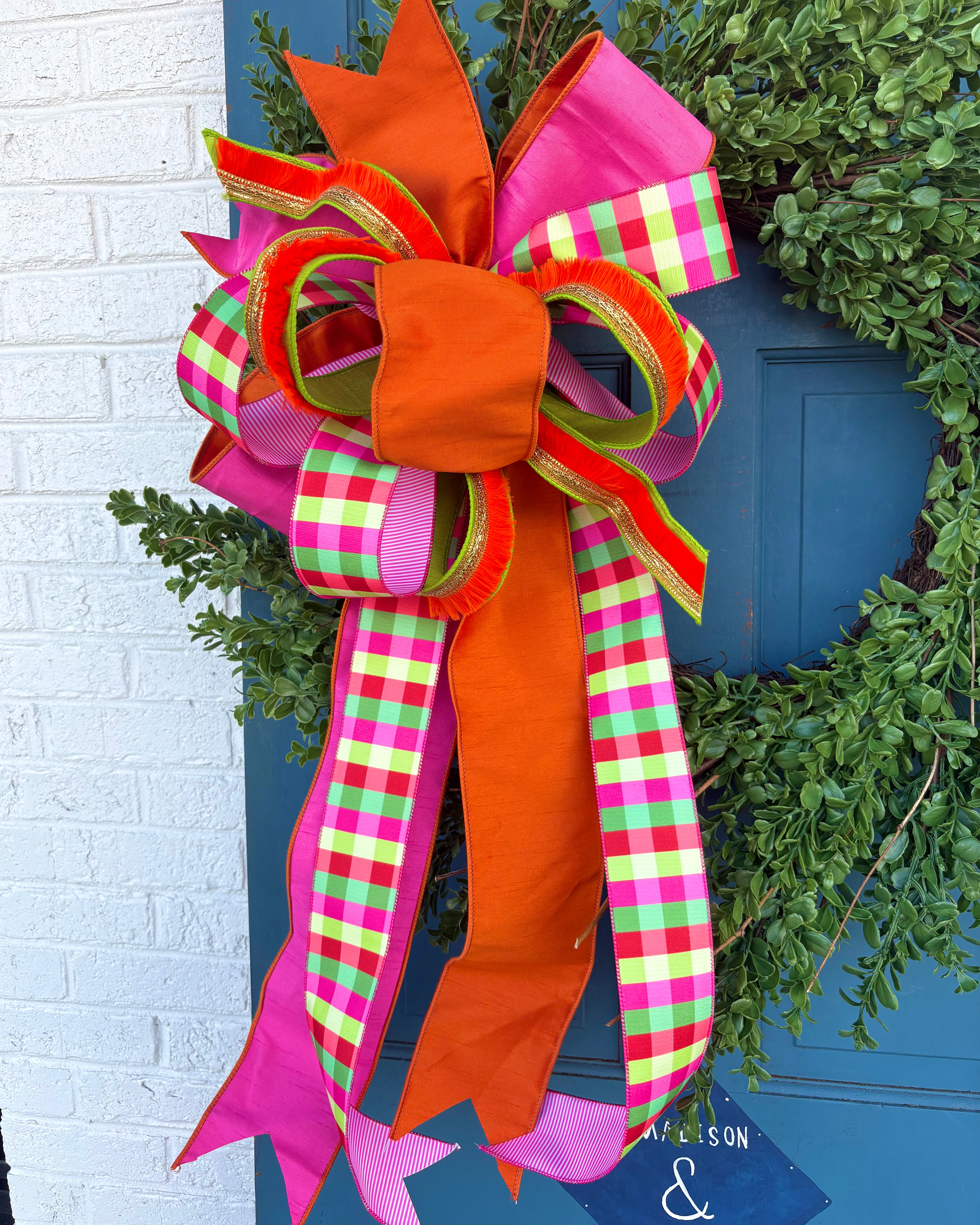 Ribbon: Pink & green plaid, embellished lime & orange, carrot orange, and bold Easter hot pink.