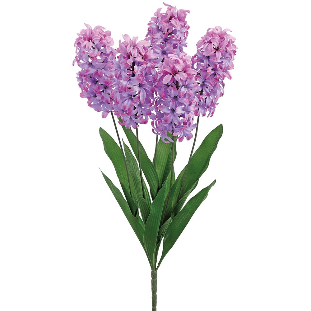 Add vibrant spring beauty to your arrangements with this 24" Hyacinth Bush featuring five stunning two-tone purple blooms. The realistic texture and natural gradient coloring give this bush a fresh, lifelike look that brightens any space. Perfect for vases, bouquets, seasonal arrangements, and garden-inspired décor, it brings lush color and elegant fullness to your displays.